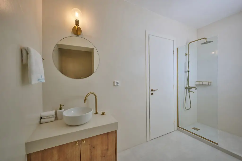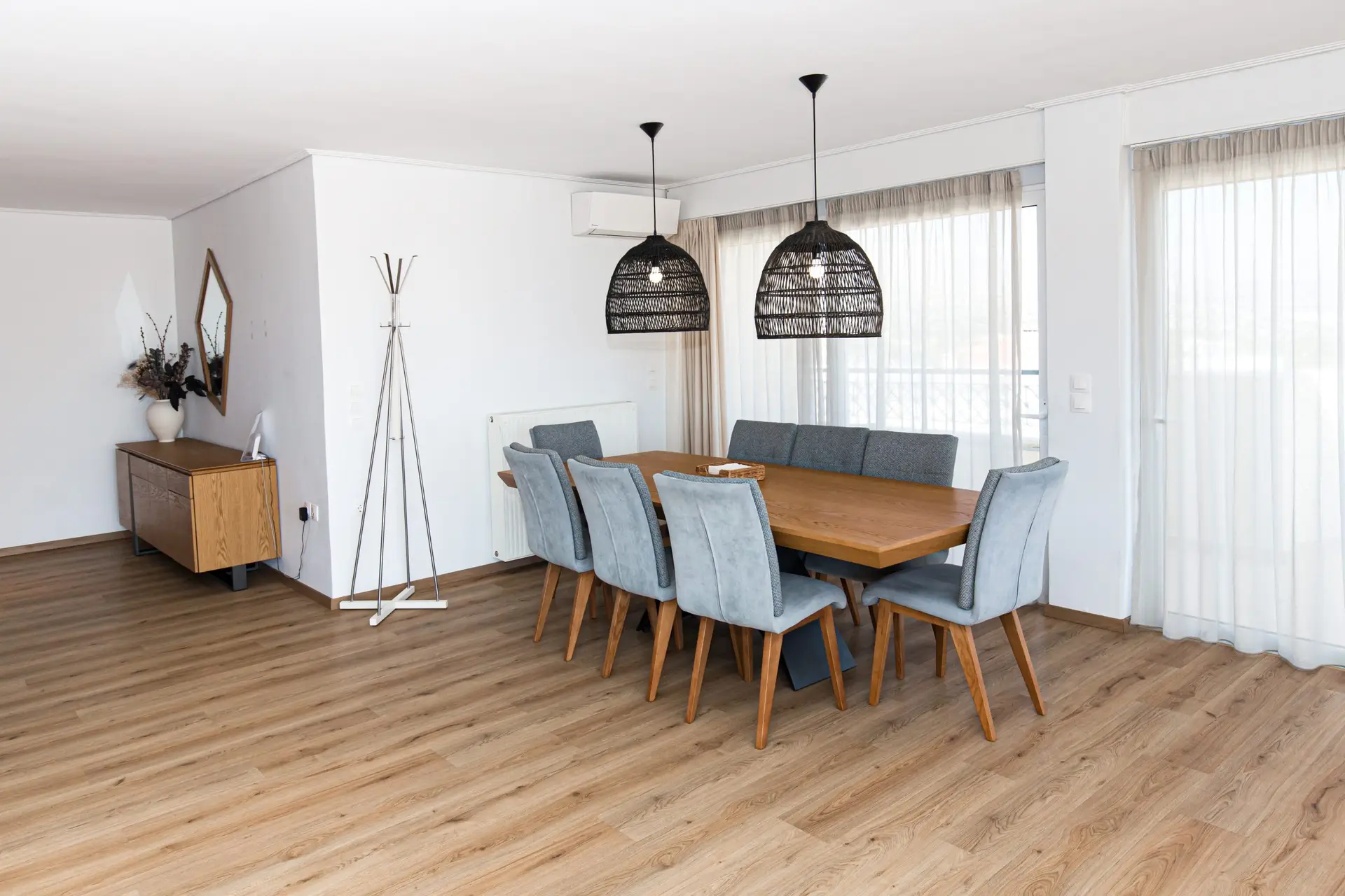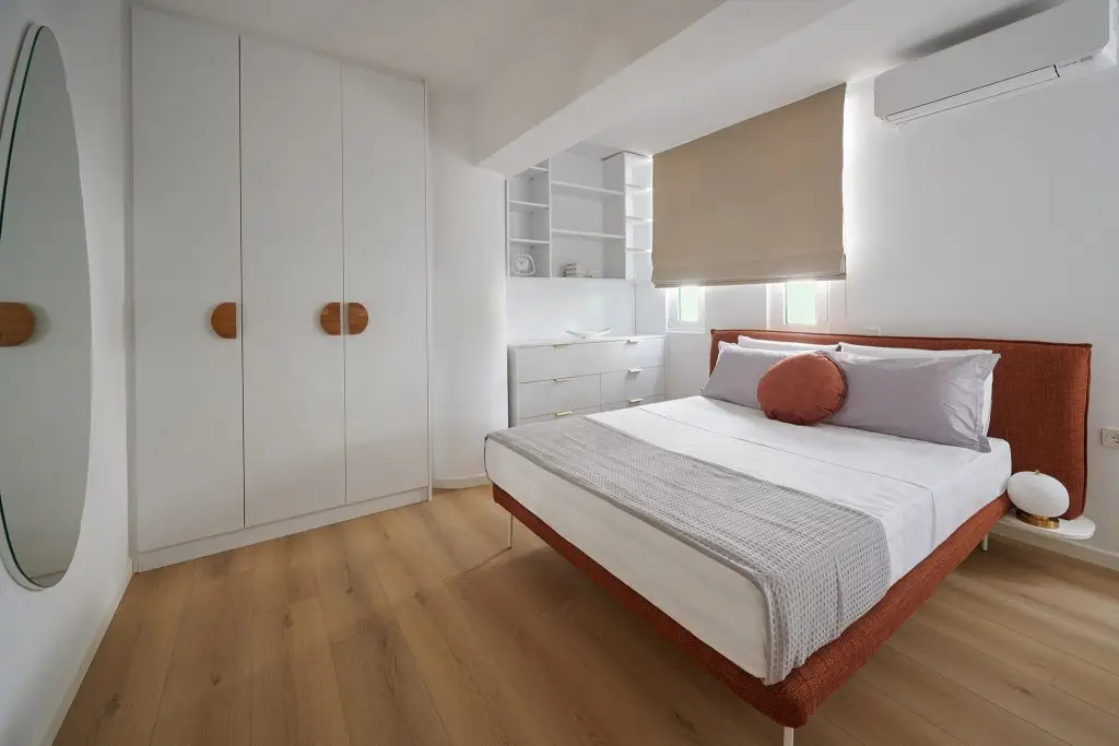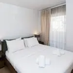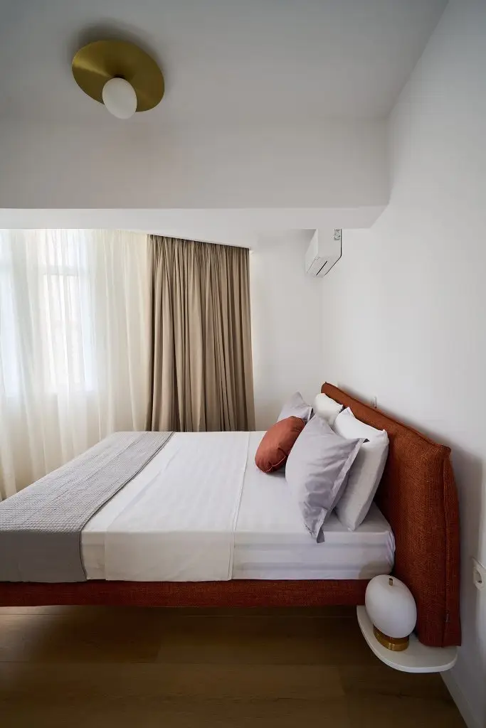 The Nafsika room with its spacious layout, large windows, and chic decor, offers a bright and inviting atmosphere, perfect for a luxurious escape.